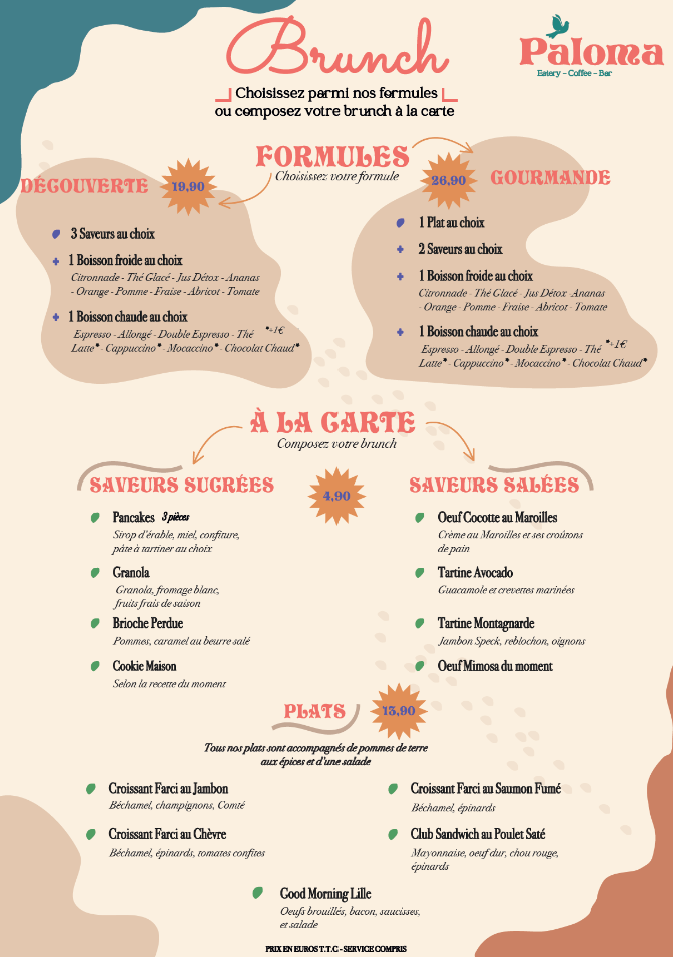 Découvrez nos saveurs sucrées et salées pour composer vous-même votre Brunch. Tout est fait maison !